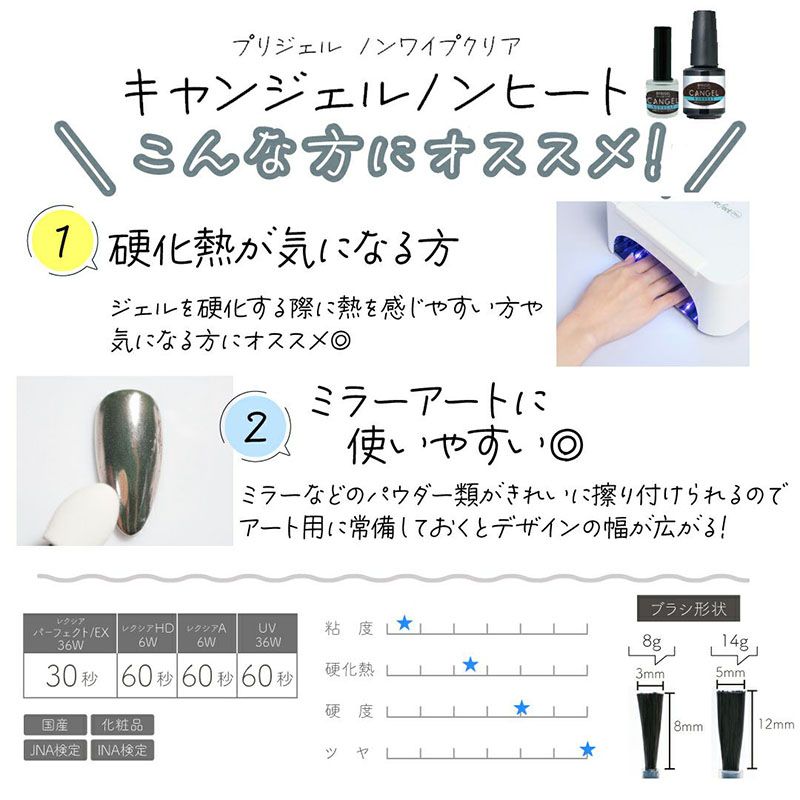 硬化時間:レクシアEX(36W)30秒 レクシア(A6W)SWEET(10W)60秒、CCFLライト(12W)30秒、UVライト(36W)60秒