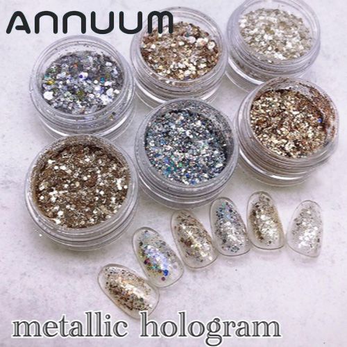 どんなデザインにも合わせやすいメタリックホログラム。ケース入りで収納に便利です。