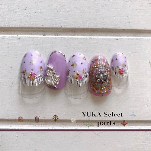 YUKAセレクトパーツ。真ん中にパールの入ったボタニカルフラワーパーツ。