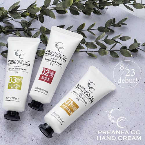 手肌を潤いで包み込み、EGF(※1)が肌環境を整えます。ベタつきがなくサラッとした使い心地でこれからのシーズンにもオススメです。ジャスミン、ローズ、ベルガモットの3種のフレーバーで登場!最近話題のEGF(※1)や保湿効果の高いシアバター(※2)を配合。ヒアルロン酸(※3)や植物エキスも配合されているので潤いを保ったみずみずしいお肌へと導きます。