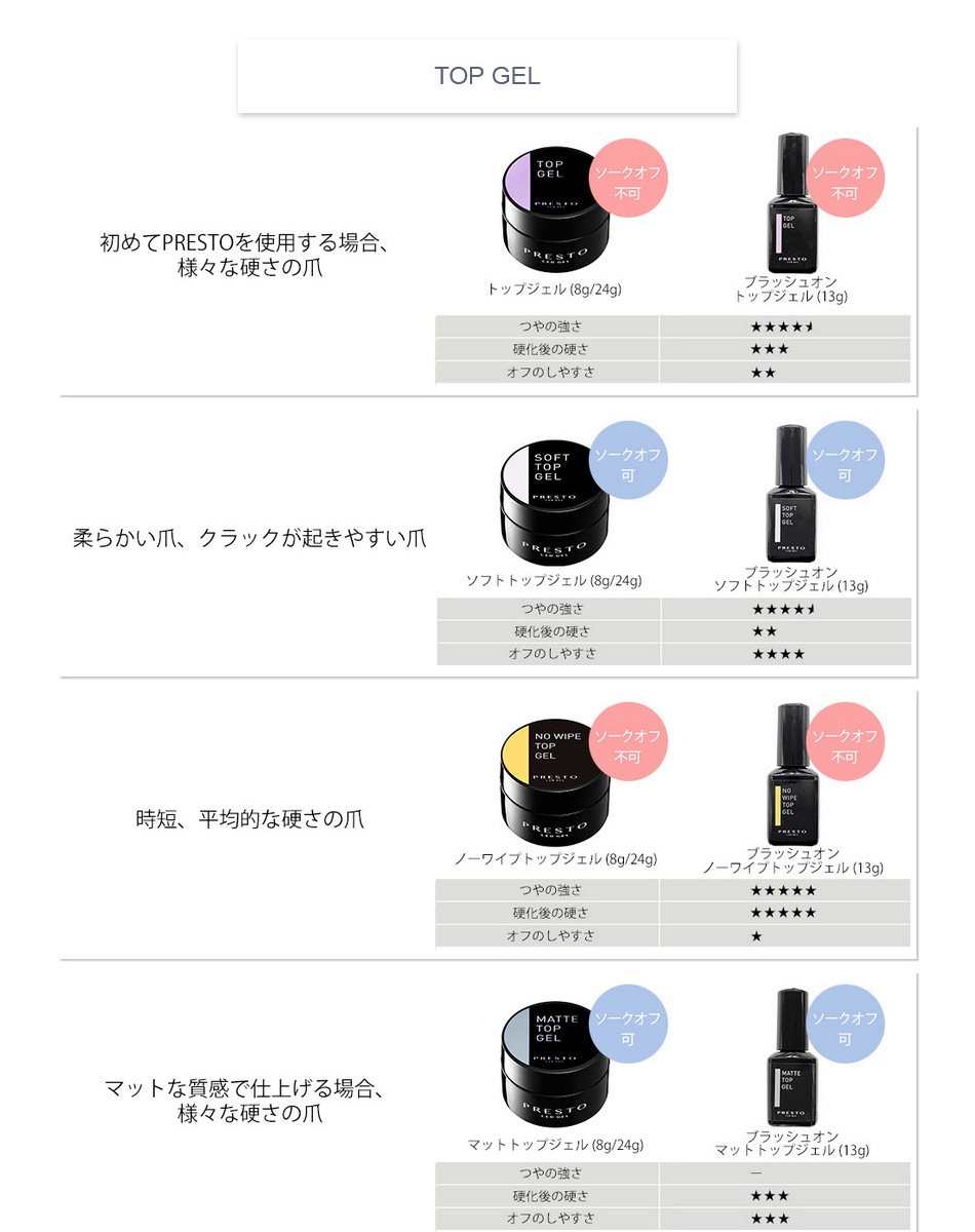 セミハードのノンワイプトップを探していました。トップがこれ一つで済むので時短になります。