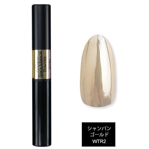 リップみたいなスポンジ付きのスティックミラーパウダーは粉が飛散しにくく、使い方簡単!美しい光沢のミラーパウダーです。蓋を外し、ワンストローク爪に擦りつけると簡単にミラーの輝きに。