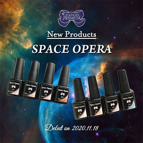 マグネットムービングエフェクトジェル、SPACE OPERA全8色。ポリッシュタイプで塗りやすい。