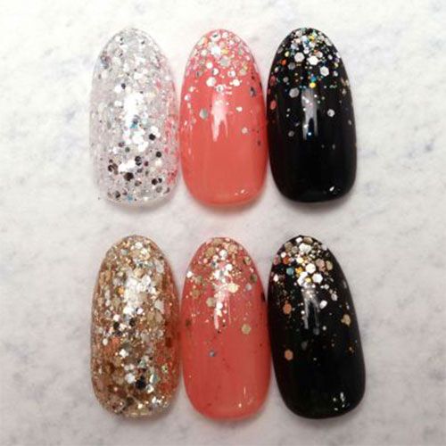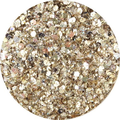 ゴールド系に輝くミックスサイズのラメです。