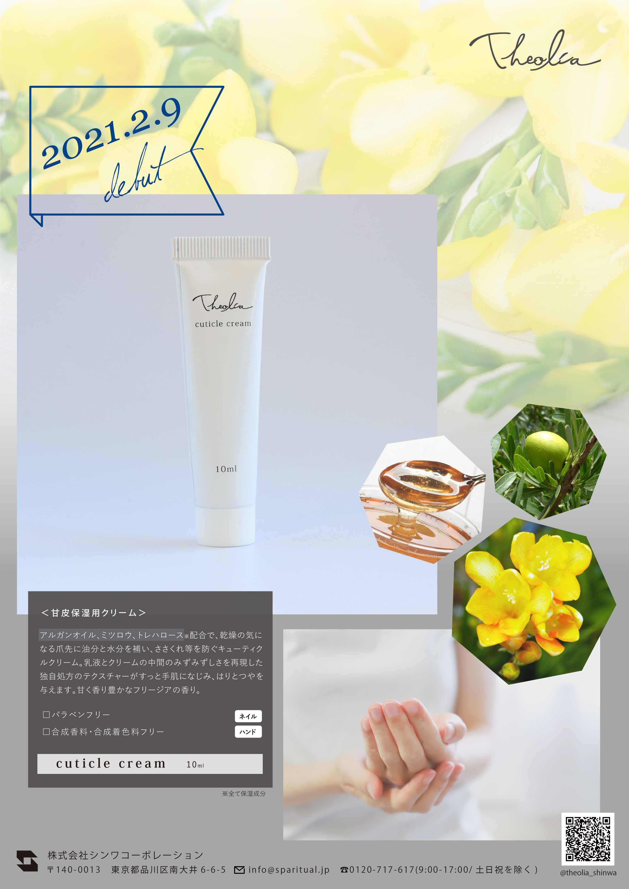 このブランドのオイルを使用しているのですがキューティクルクリームなるものが安かったので買いましたが、うーーん潤う感じはあんまりないかなぁ。これだったら普通のハンドクリームでいい。内容量めっちゃ少ないし