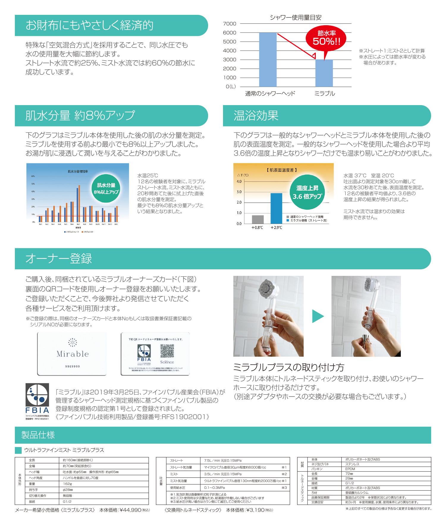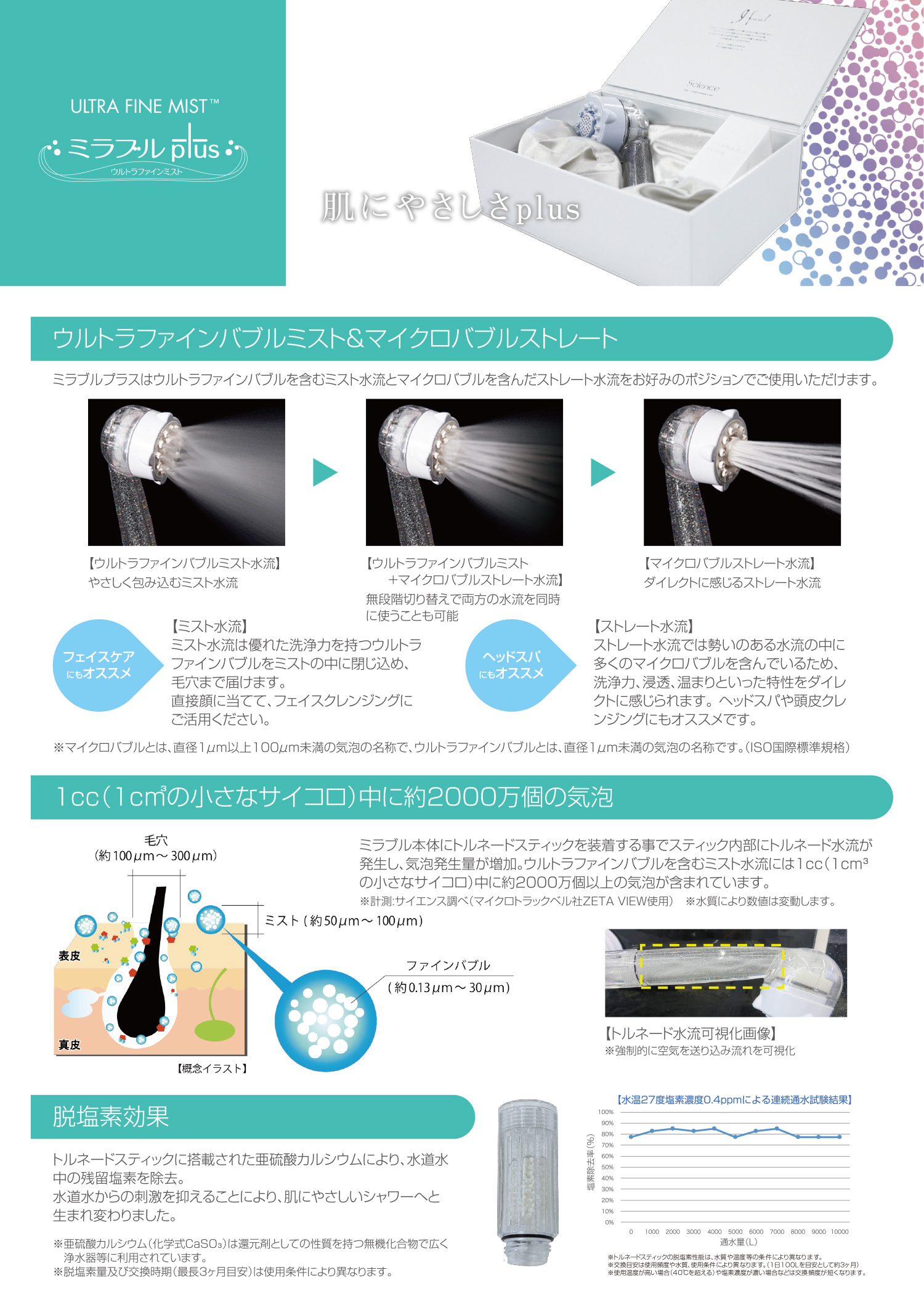 ミラブルプラスは日本初の美顔効果のあるシャワーヘッドです。