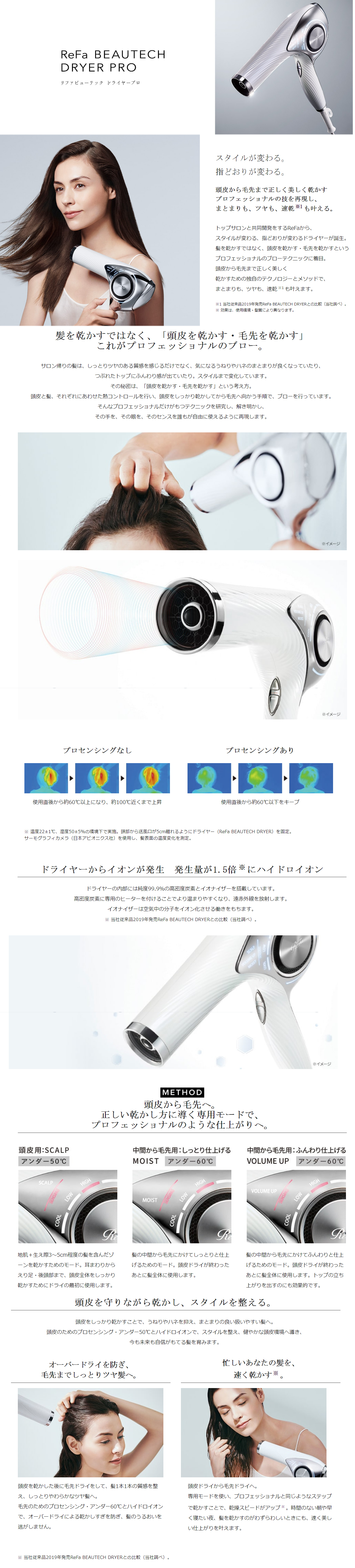 その技を独自のテクノロジーで再現するのがReFa BEAUTECH DRYERの髪の温度を自動で調整する「プロセンシング」と「ハイドロイオン」でプロの“レア髪”を実現します。