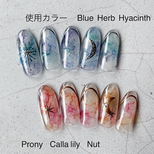 ニュアンスネイル、大理石ネイル、インクネイルのデザインに使える、他にはないトレンドのくすみカラーのインクリキッドです。
