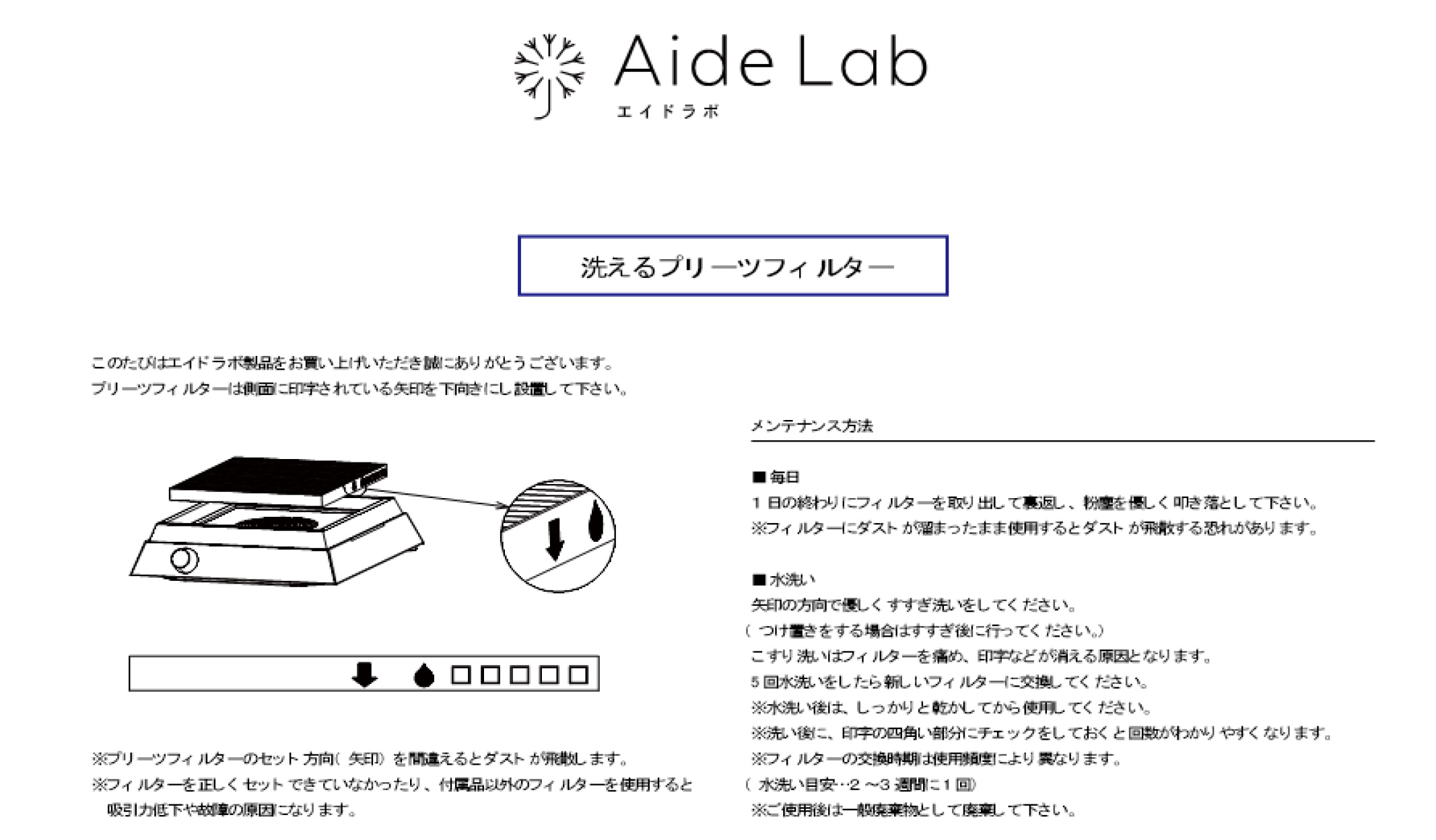 kasane専用の洗えるプリーツフィルター(1枚)です。