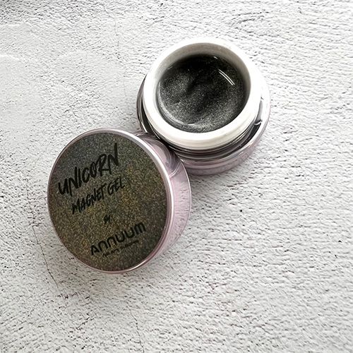 1.ベースカラーを塗布して硬化後、ユニコーンマグネットジェルを塗布します。