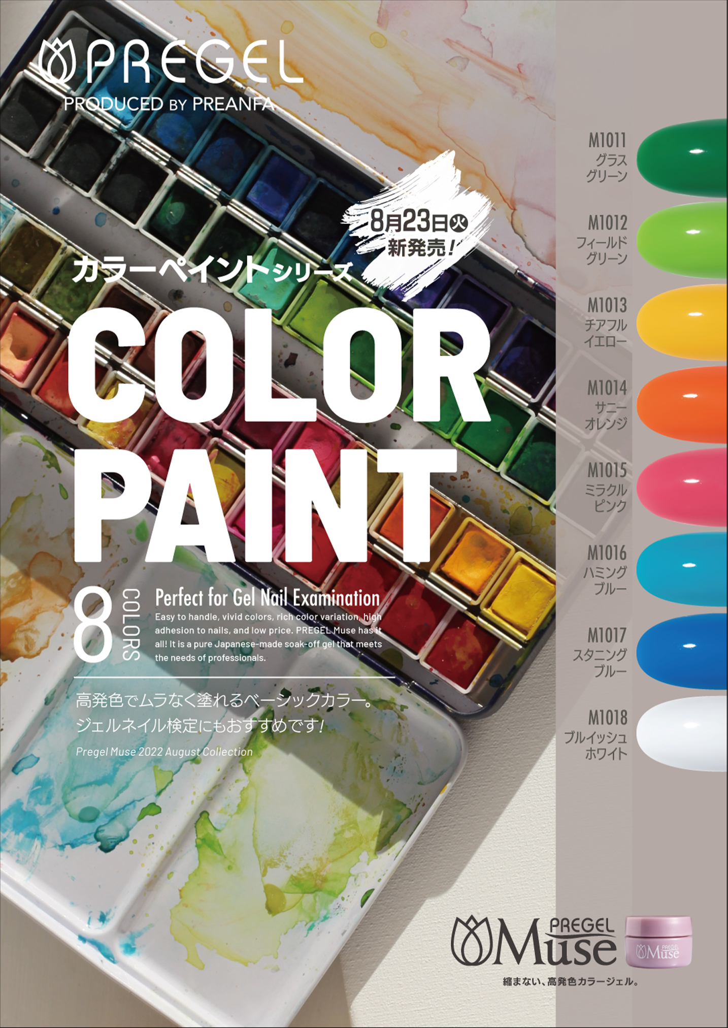 今回のミューズ第38弾「カラーペイントシリーズ」はこだわりの調色で、まるで絵の具のような色彩を感じさせるアートのために作られた8色です!