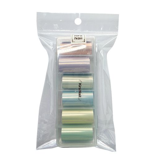 転写アートホイル。ミルキーオーロラクリアカラーミラーセット。パウダーを使用したような転写アートホイル。
