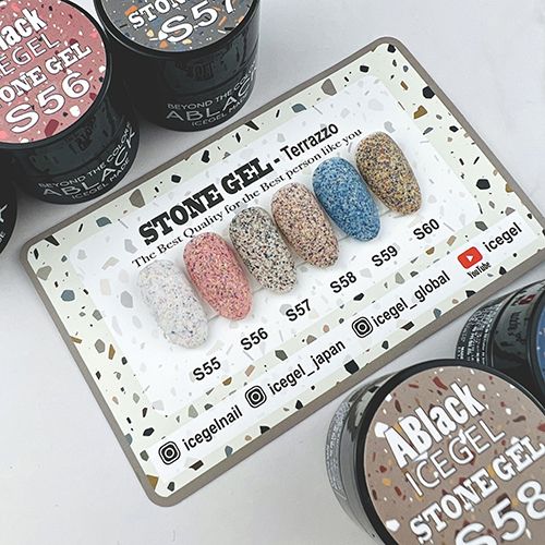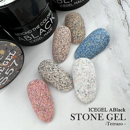 ICEGELで人気のカラージェル「ストーンジェル」がABLACKシリーズでリニューアル!(TO530と同色商品)つぶつぶの顔料で塗るだけで人工大理石のようなストーン模様になるカラージェルです。