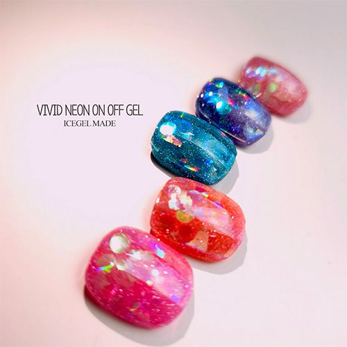 フラッシュジェルのシリーズ「オンオフジェル」にビビットなネオンカラーが登場。鮮やかでありながらフラッシュラメでシックなシリーズです。