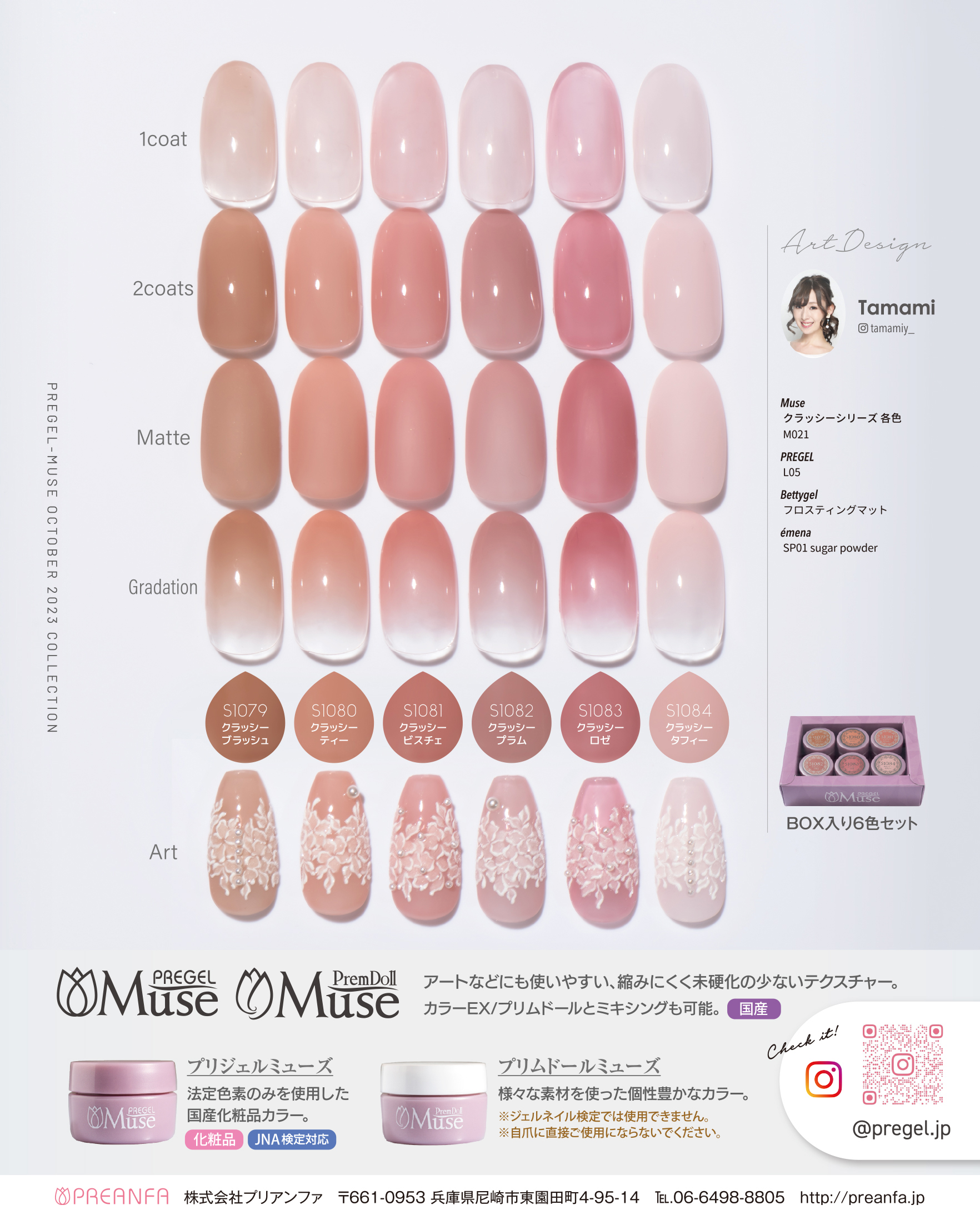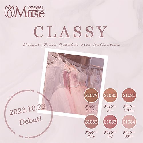 今回のミューズ第51弾「クラッシーシリーズ」は落ち着いた雰囲気の上品なピンク系シアーカラー6色です。