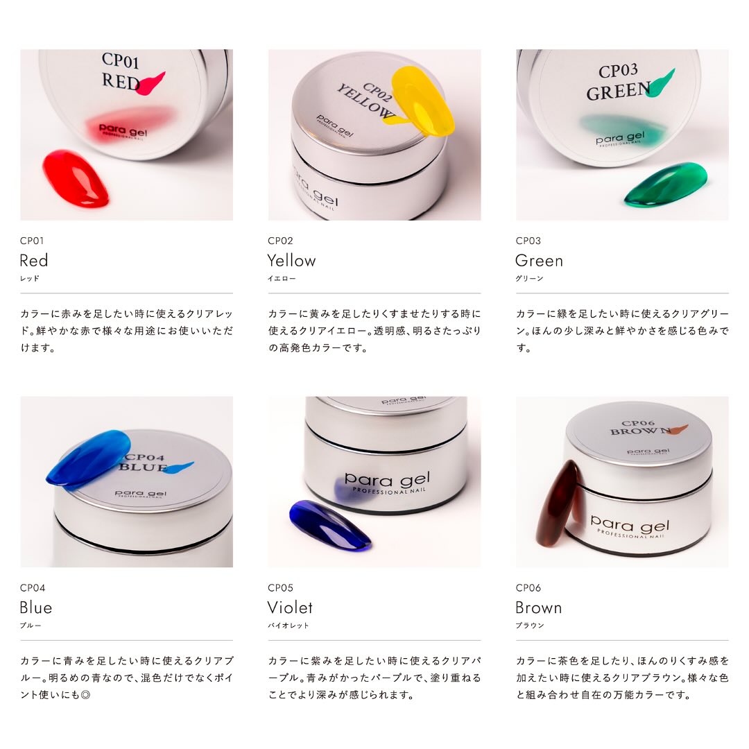 絵の具のようなカラー展開で、混色や色みの微調整がしやすいクリア感のあるカラージェルです。