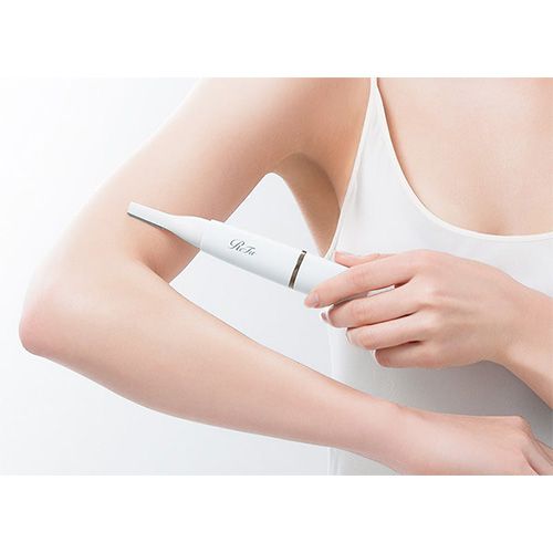 肌を軽くなでるだけで2枚の刃が毛をカット。