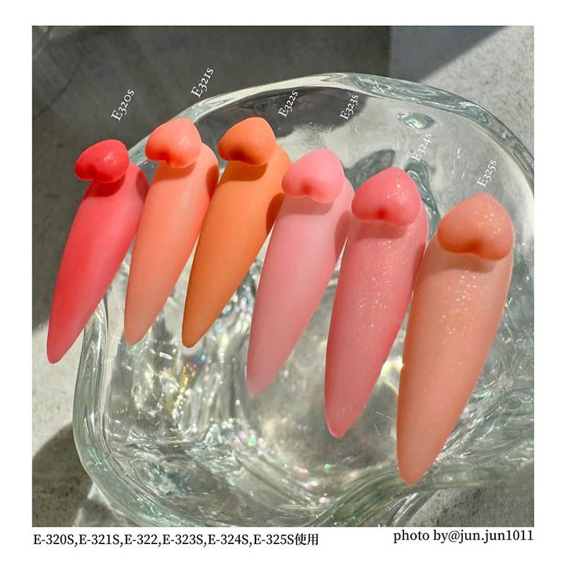 透明感のあるコーラルピンクに微細なラメが揺らめきます。