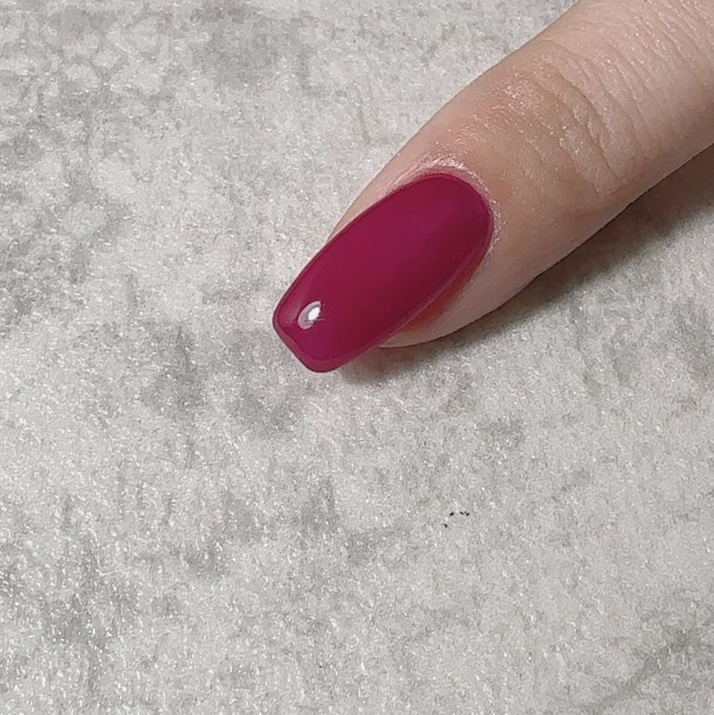 シアーとしてますが透け感は少なめで、パキッとした紫と赤とピンクの中間色です。