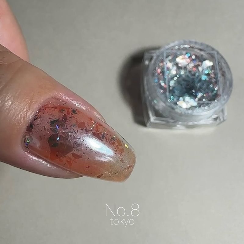 極薄の偏光カラーの箔型グリッターパウダーです。