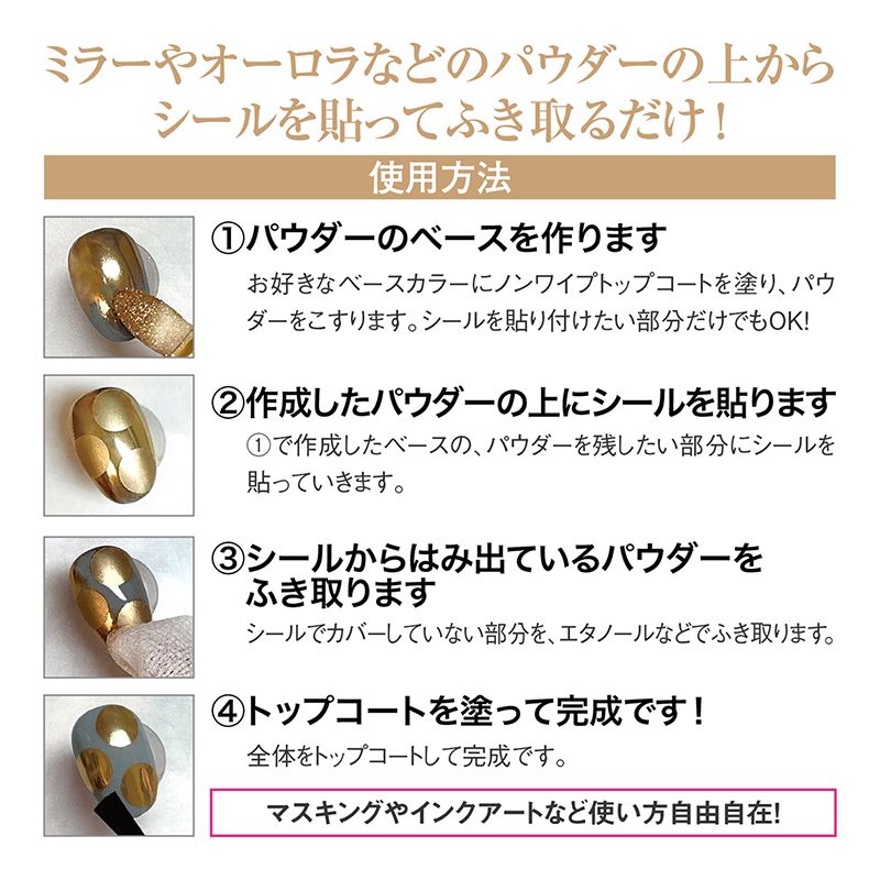 パウダーを擦ってシールを貼り、拭き取るだけ!