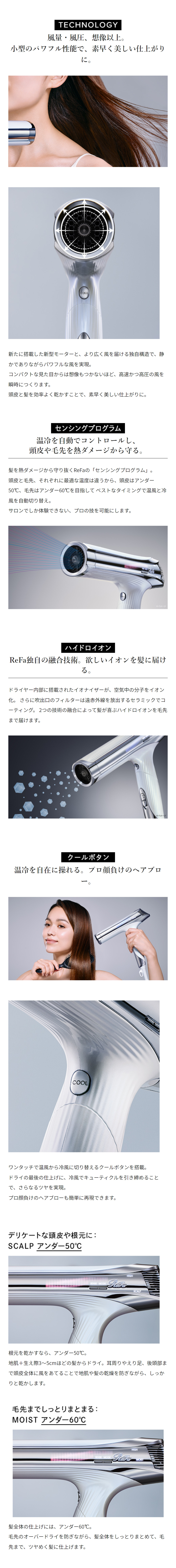ReFaは独自のテクノロジーとメソッドで、時間や場所に捉われず、毎日のヘアドライをもっと美しくなれる時間へと変えていきます。