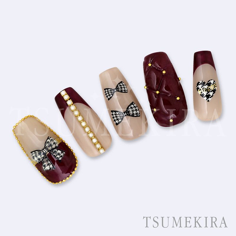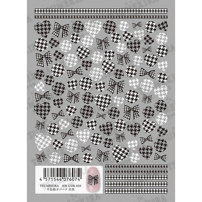 千鳥格子柄の丸とハートとリボンのパーツをワンポイントに使っても、既存の千鳥格子シールと合わせても使えます。