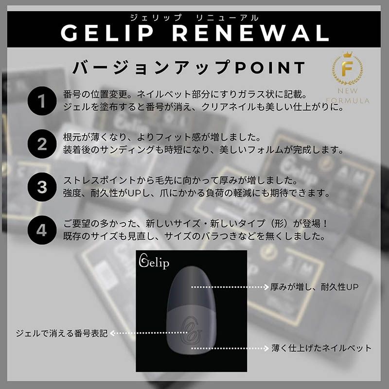 大好評のGelipがリニューアル!ジェルと融合する特殊な素材でできたソフトジェルタイプのフルカバーチップです。