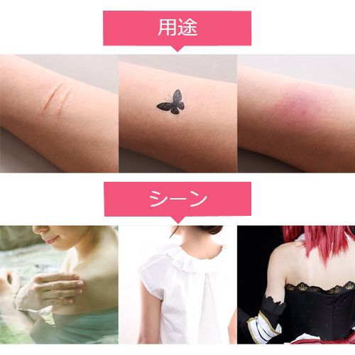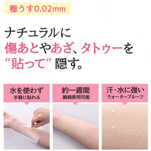 シートを貼って隠すタイプで傷あと・あざやタトゥーを隠せます。