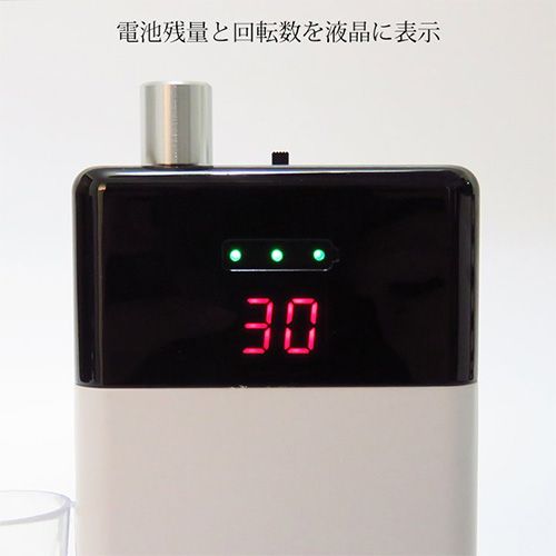 ◆本体にあるスイッチにて正・逆回転方向の切り替え、ON/OFFのダイヤルスイッチでスピード調整ができます。スピードの液晶表示(1メモリごとに1000回転ずつアップしていきます)