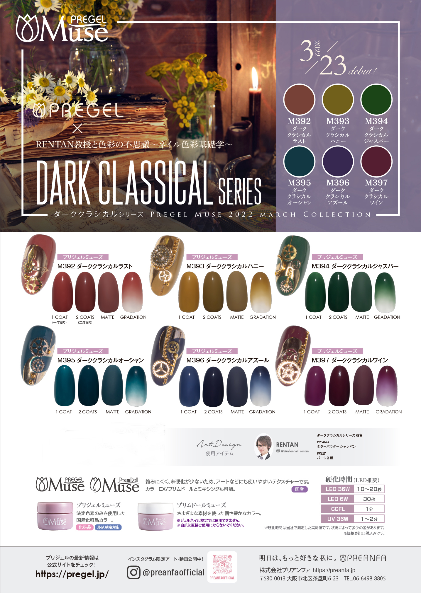 「プリムドールミューズ」、「プリジェルミューズ」はプリジェルの更に先を行く、全く新しいカラージェルラインです。