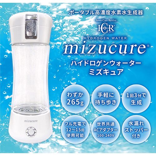 わずか3分で高濃度水素水を生成するmizucure(ミズキュア)。