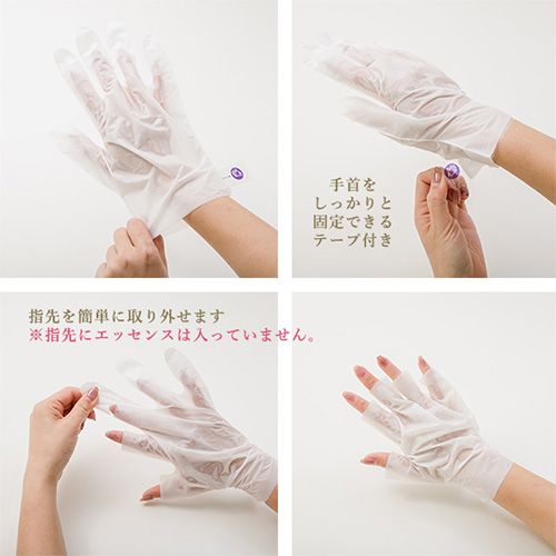 指先のカット部分を取り外し、15分程度浸透させます(※指先部分にエッセンスは入っておりません)。
