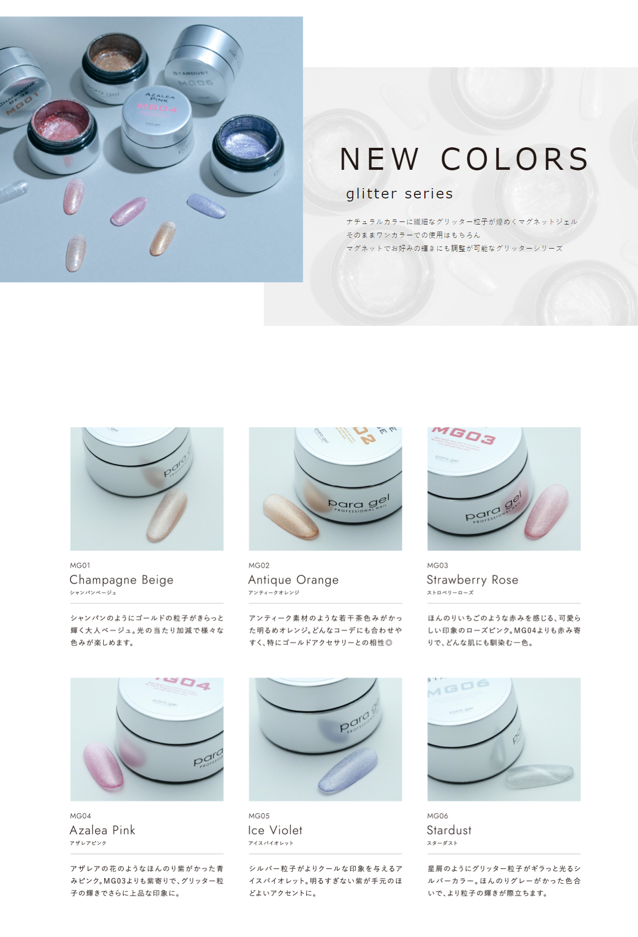 そのままワンカラーでの使用はもちろんマグネットでお好みの輝きにも調整が可能なグリッターシリーズです。