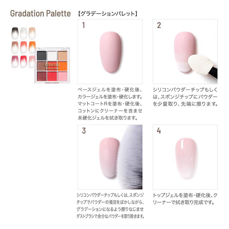 付属のスポンジチップで擦るだけで、グラデーションアートやチークアートなどが簡単に!