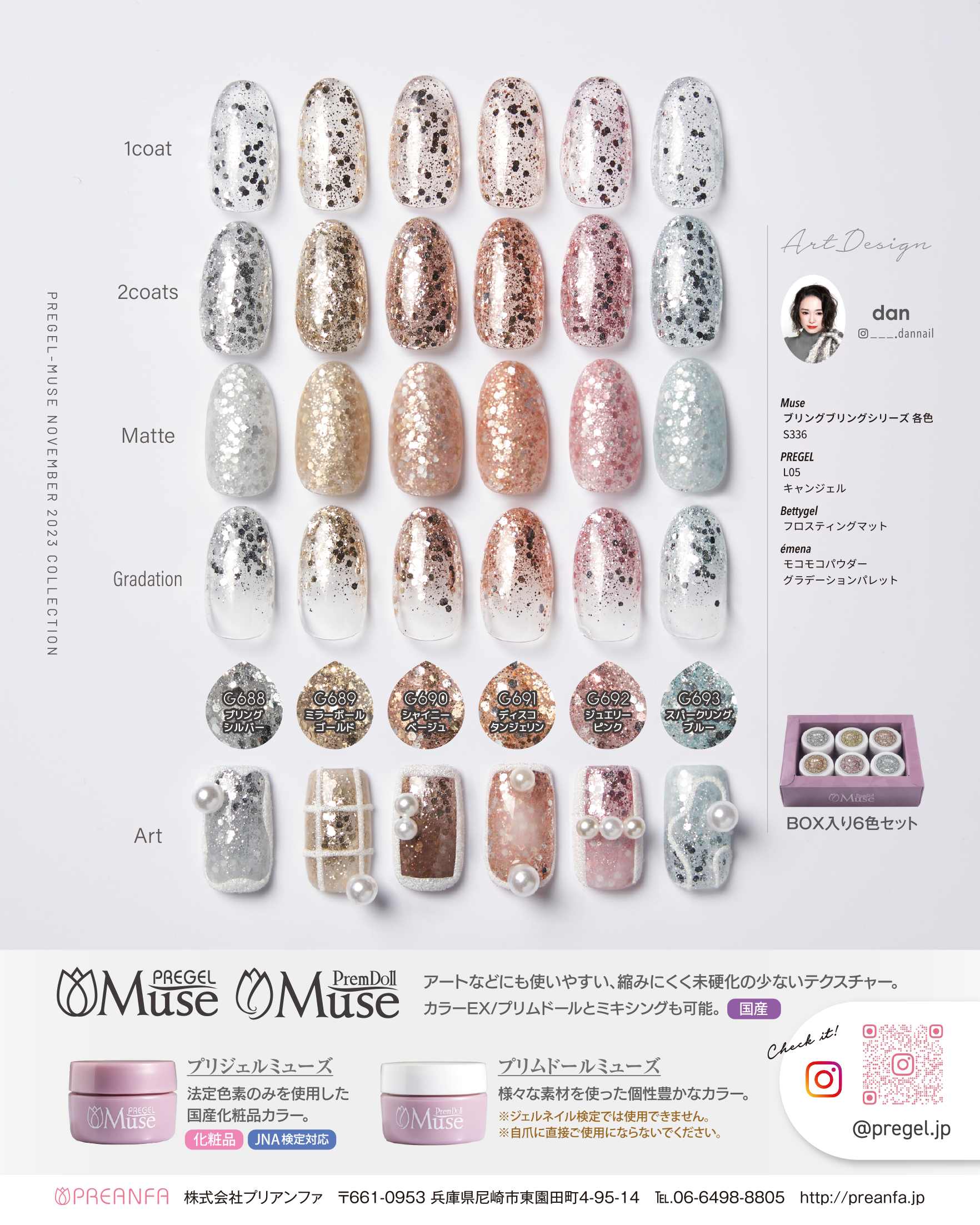 オールシーズン使いやすい上品な輝きと存在感で、グラデーションやワンカラ―、ポイントアートにもおすすめです。