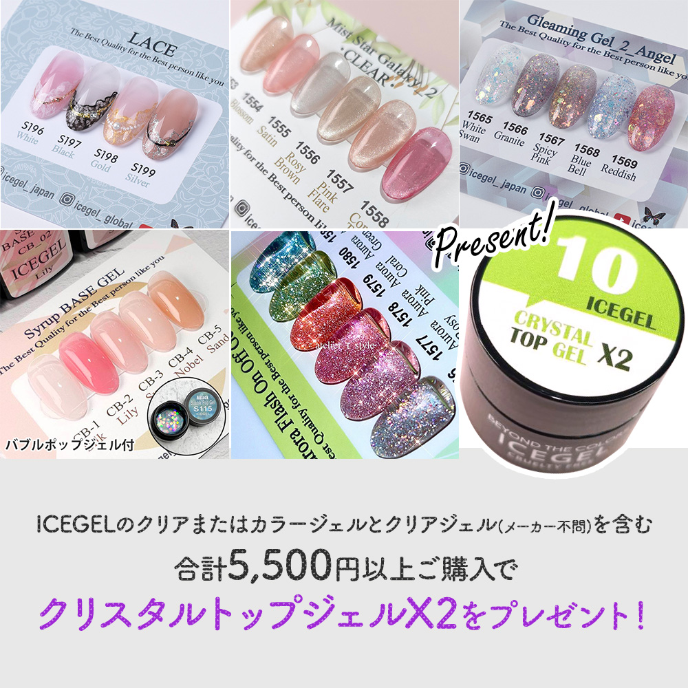 ICEGELクリアまたはカラーと、メーカー不問のクリアジェルを"含む"