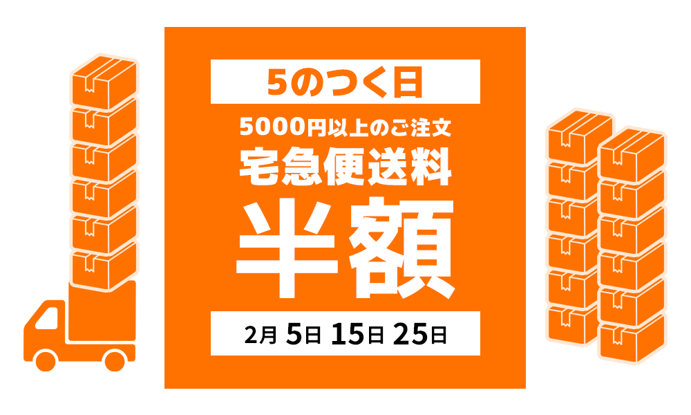 商品合計金額5000円以上(税込)で、宅配便送料半額!