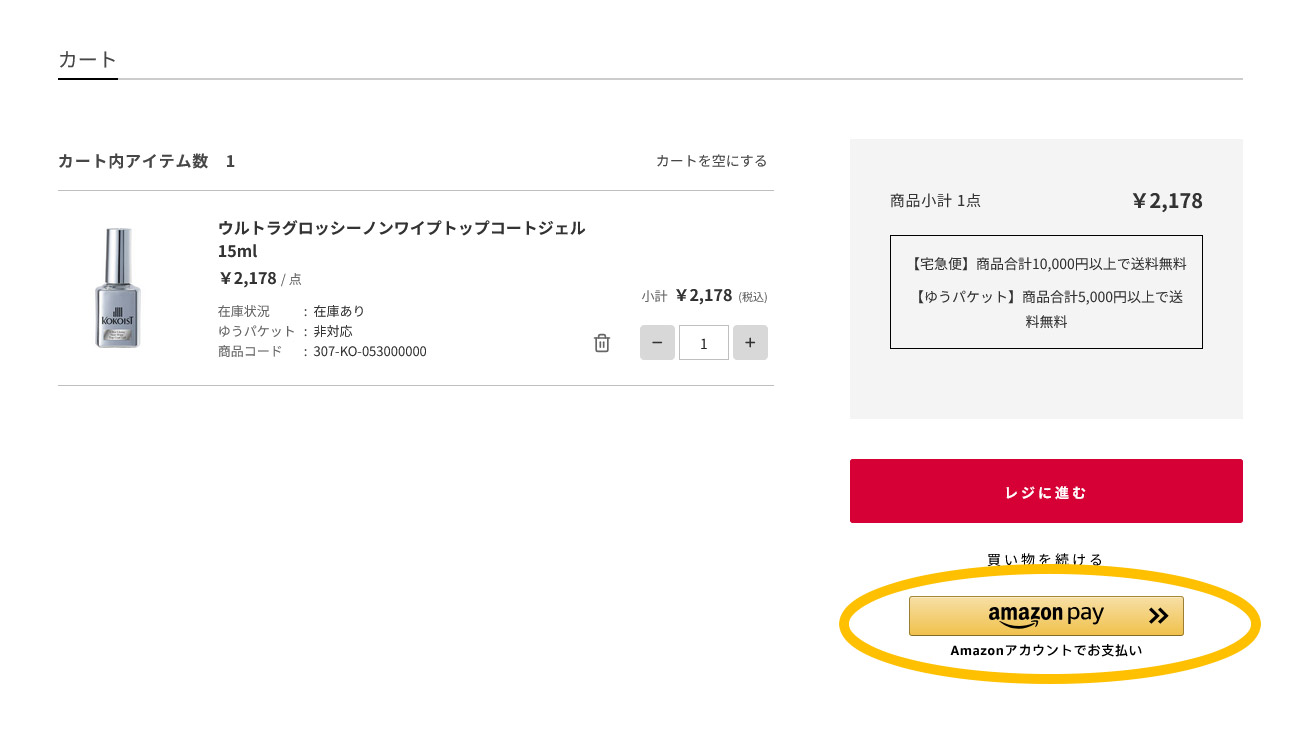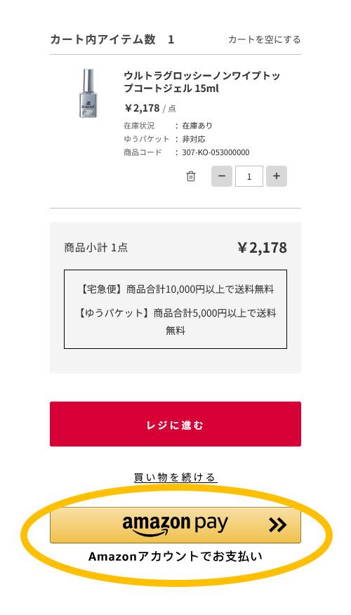 カート画面の 【amazon pay】 の黄色いボタンを押す